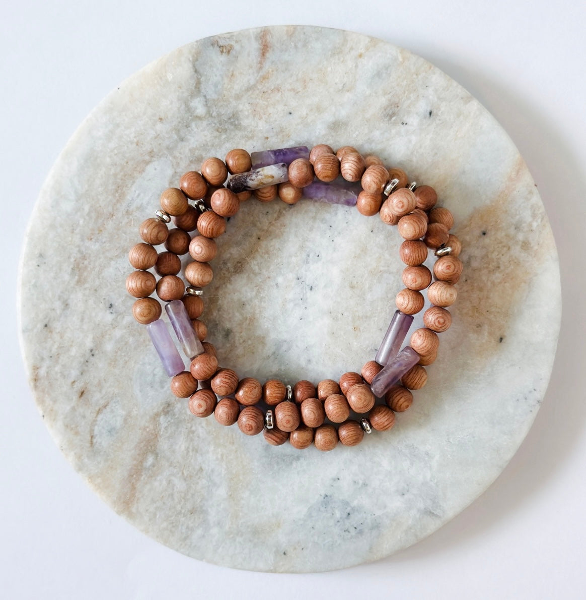 The bracelet's foundation is created using Rosewood beads used to encourage compassion, love, and empathy towards oneself and others. Wearing rosewood is helps release stress, anxiety, and negative emotions, allowing you to embrace a sense of inner peace and emotional stability.