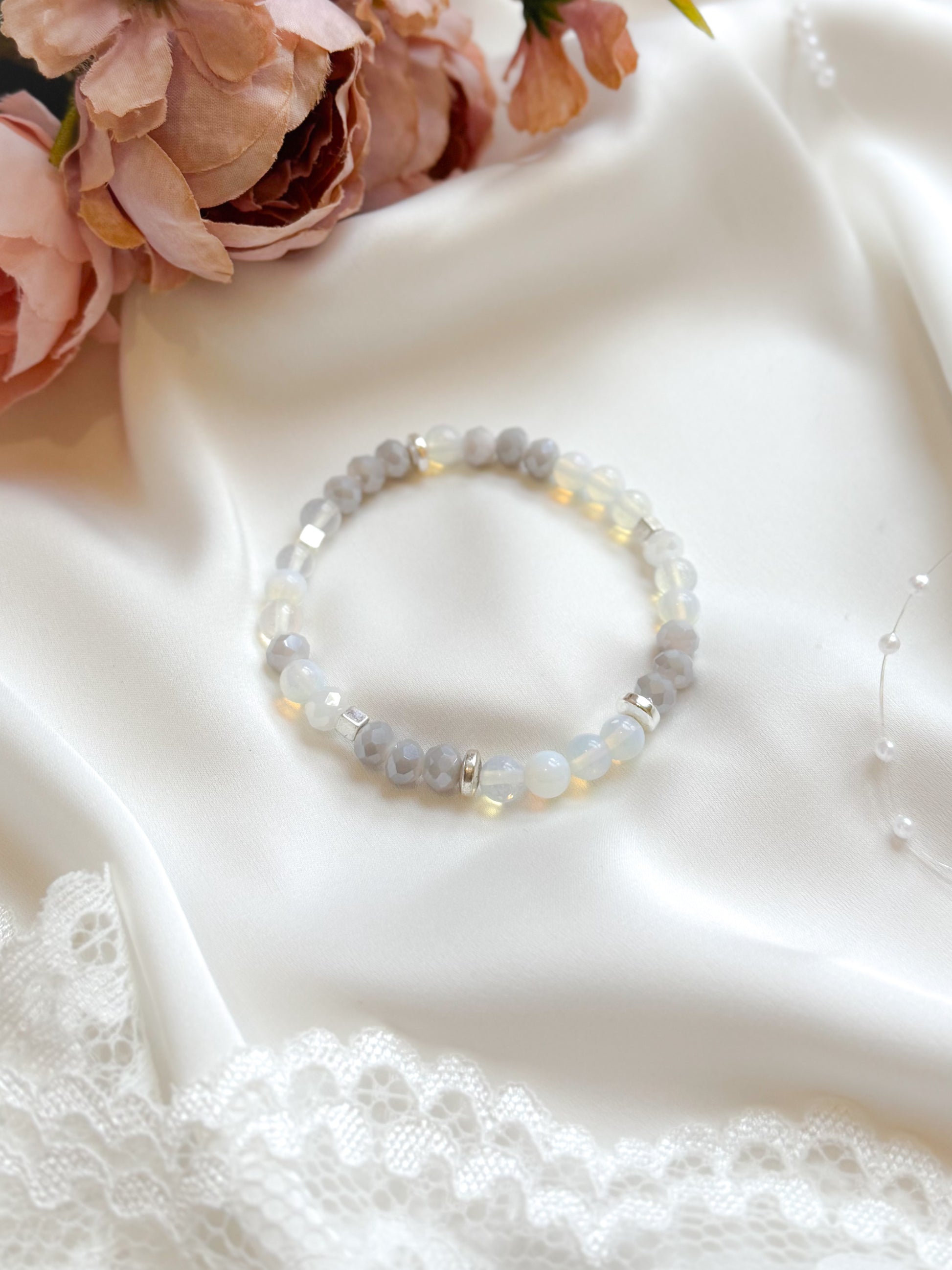 Find balance and tranquility with the Misty Harmony Set, featuring two beautifully complementary bracelets crafted from cool grey Agate and crisp white glass beads. Grey Agate grounds and soothes the spirit, promoting emotional stability and calm, while the white glass beads add a touch of purity and lightness. Together, these bracelets create a harmonious duo that effortlessly blends elegance with peaceful energy—perfect for layering or wearing separately to bring clarity and serenity to your everyday style. Let Misty Harmony be your reminder to embrace calm amidst life’s gentle fog.