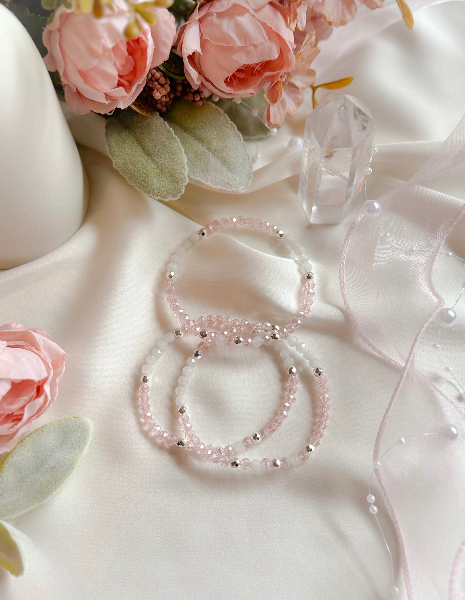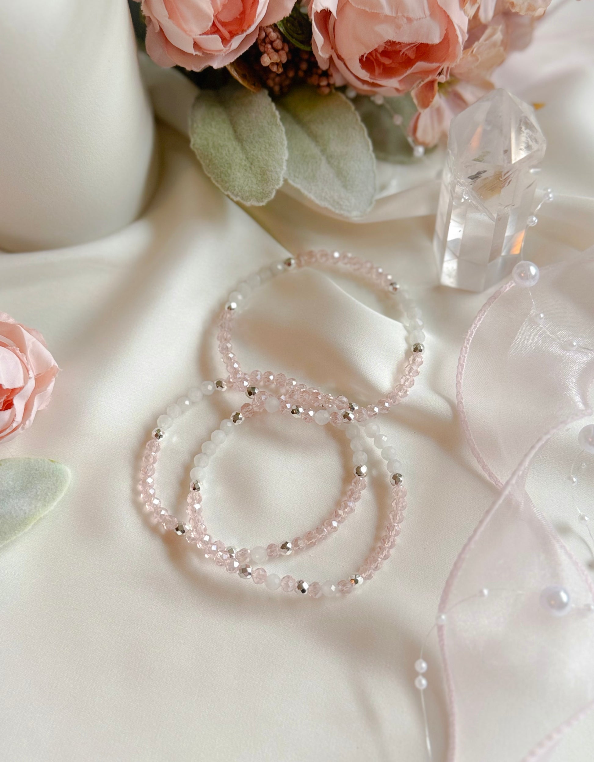 • 4mm Rose Quartz: The stone of universal love, known for softening emotional wounds, restoring trust, and inviting peace, harmony, and heartfelt connection.