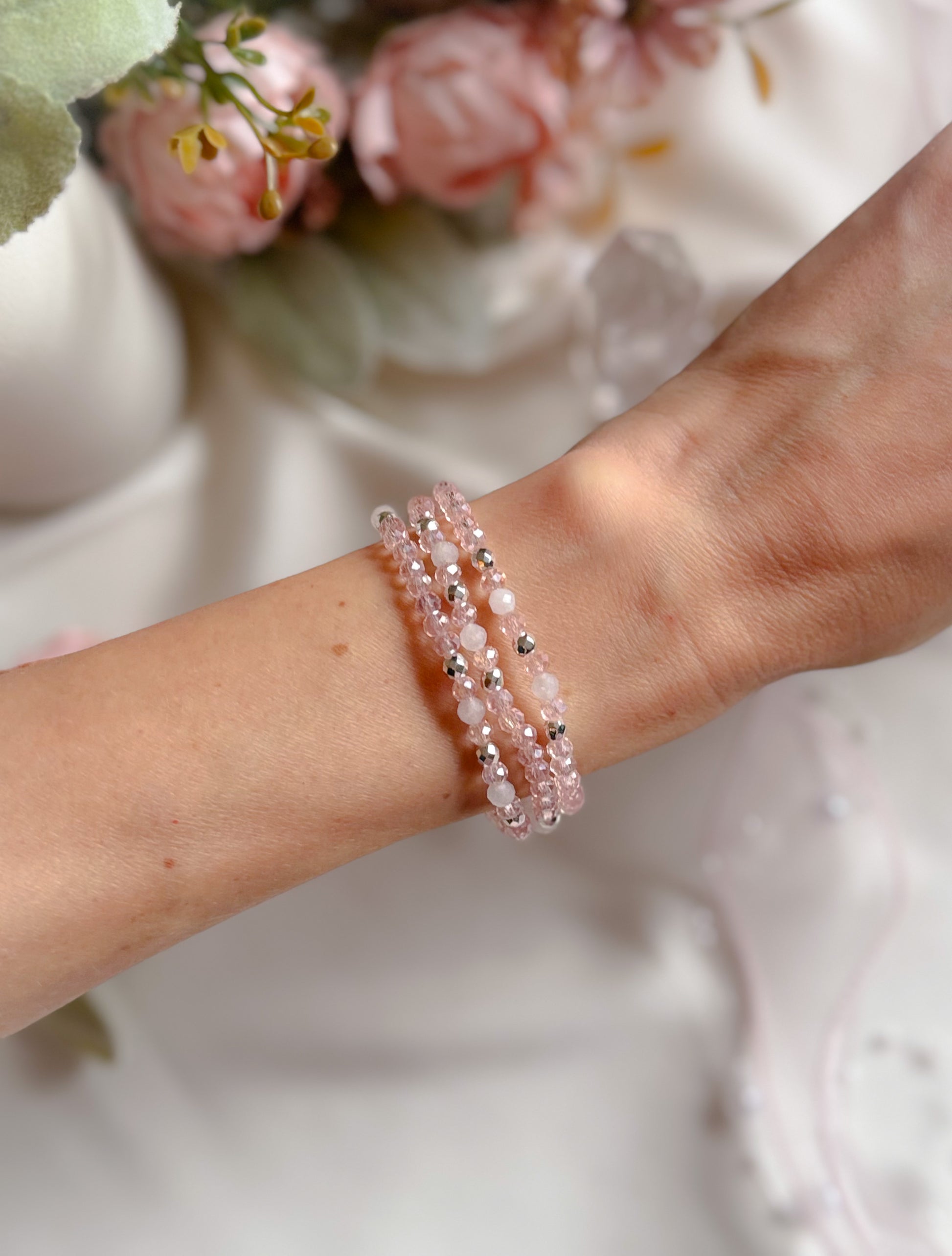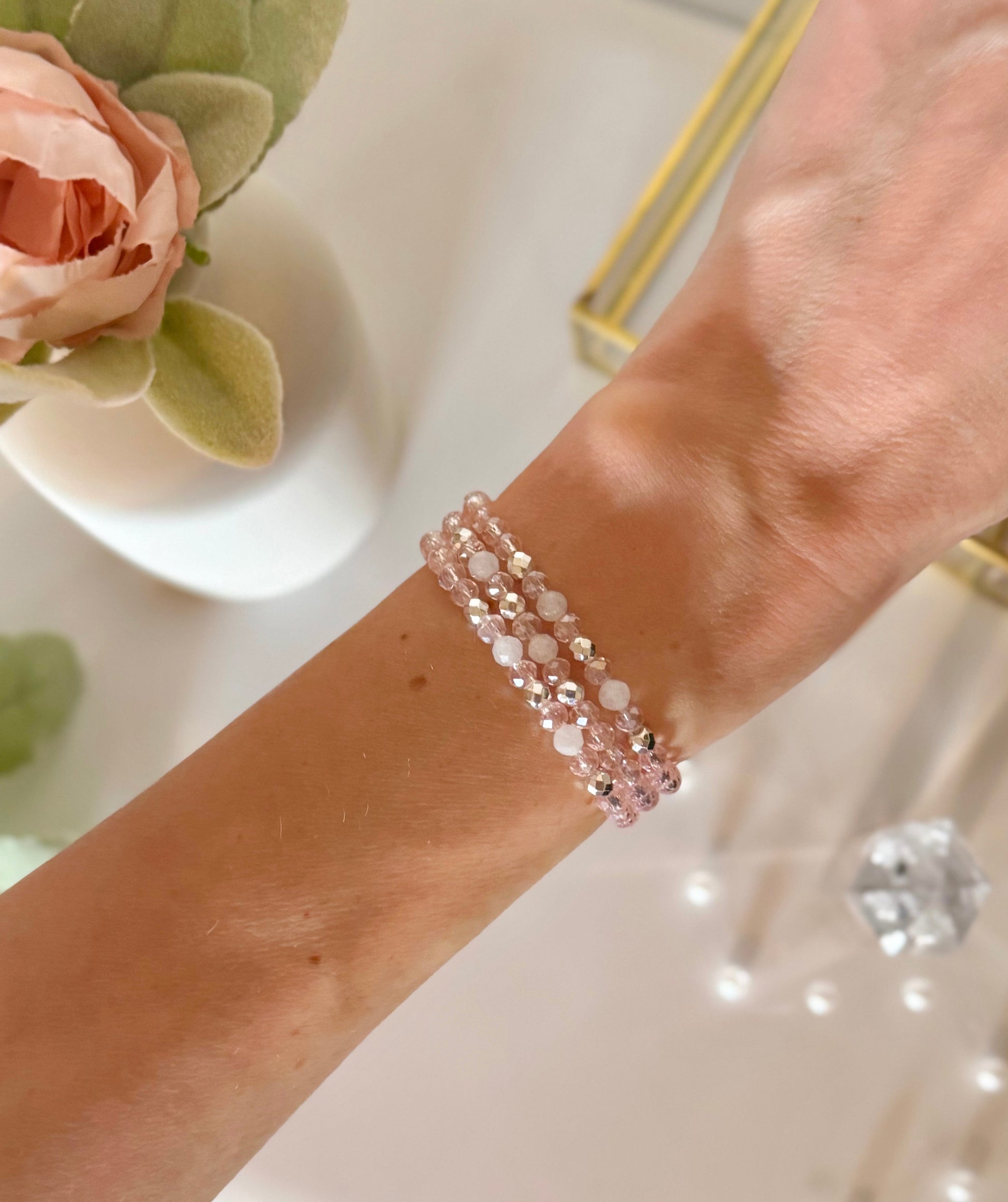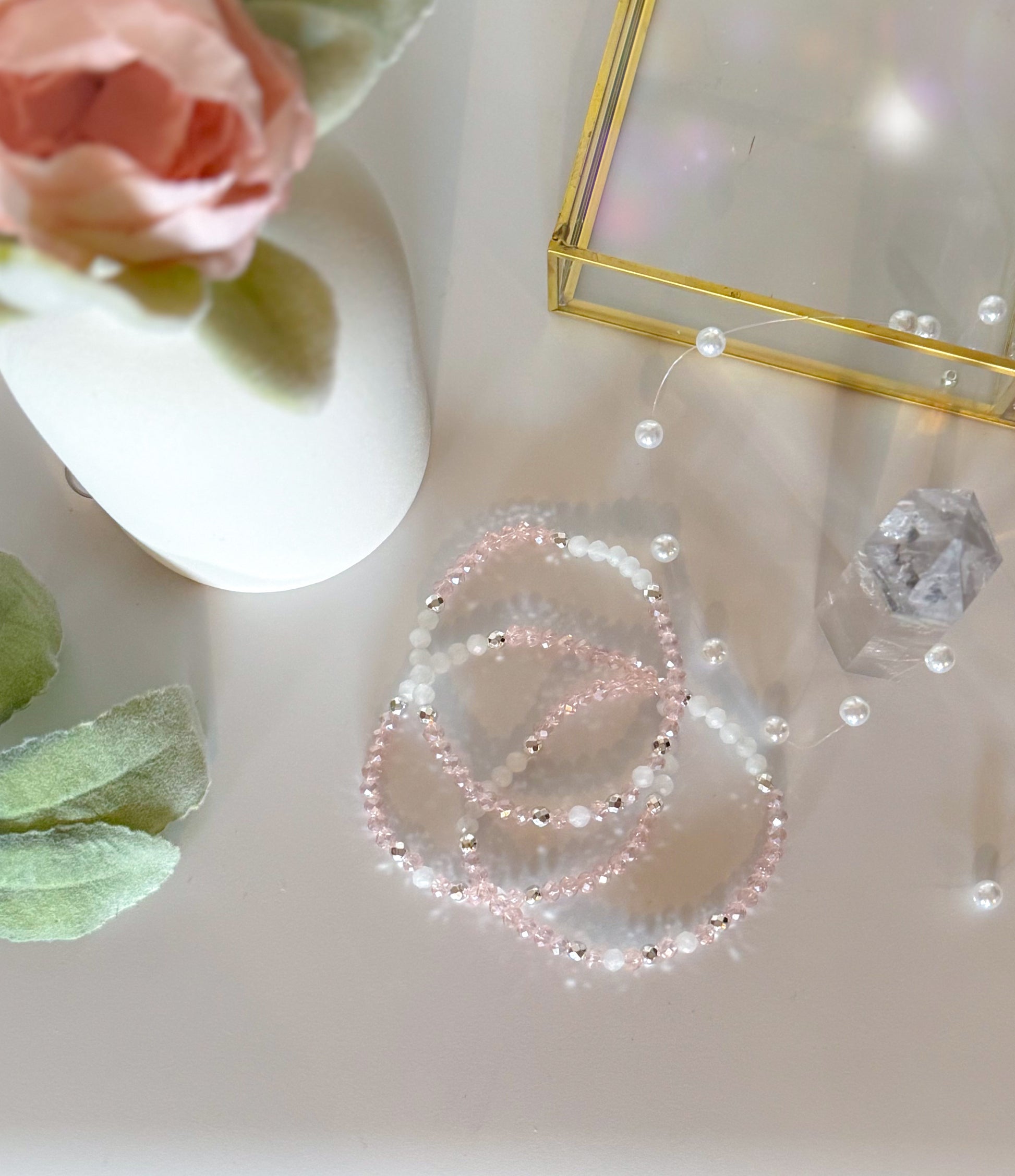 • Delicate 4mm gemstone bracelet featuring Rose Quartz and Moonstone