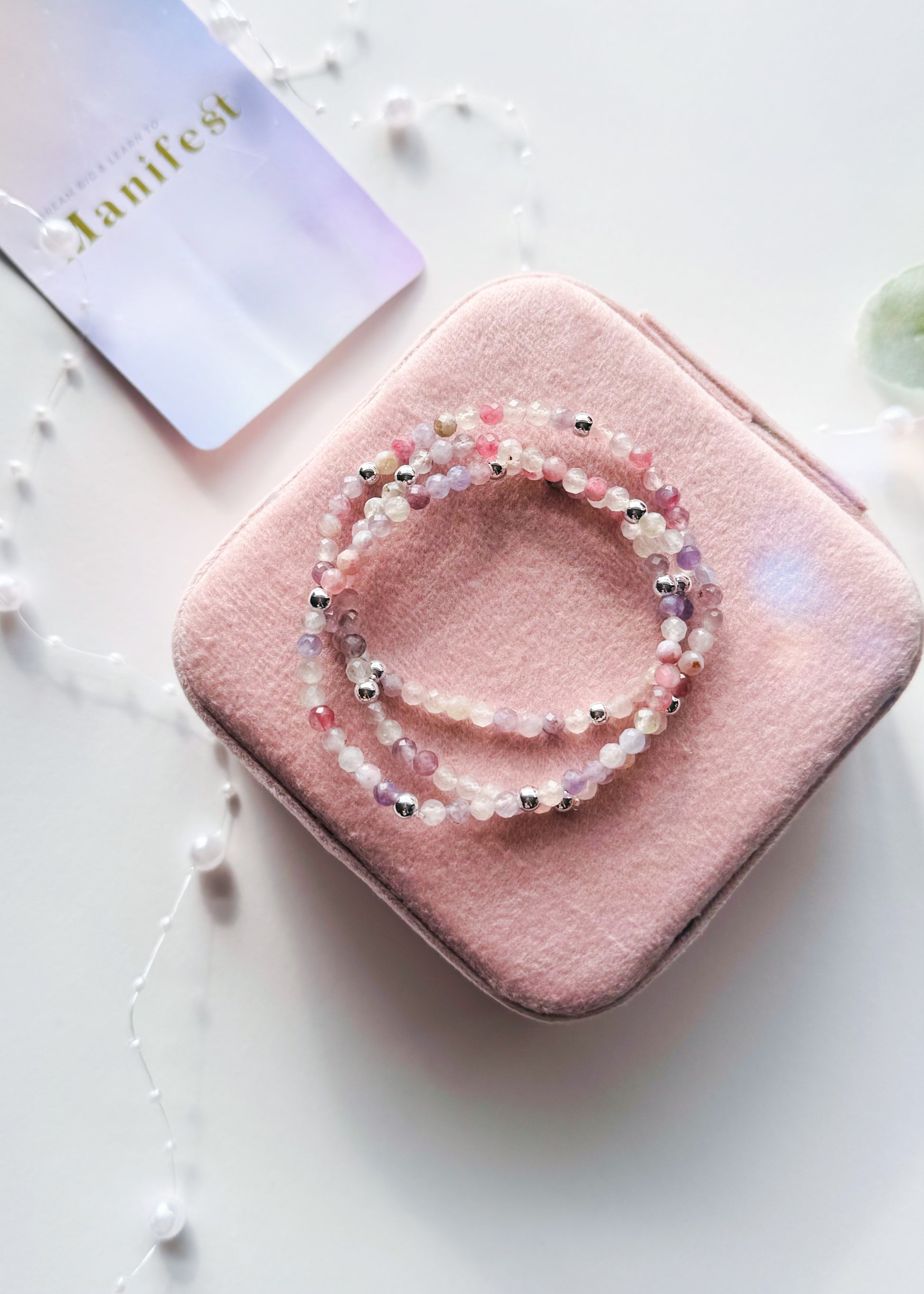 I Am Resilient bracelet is a symbol of strength, renewal, and emotional balance. This rare and captivating gemstone, with its soft pink and deep plum hues, is known for its ability to support the heart, ease emotional wounds, and promote inner stability.