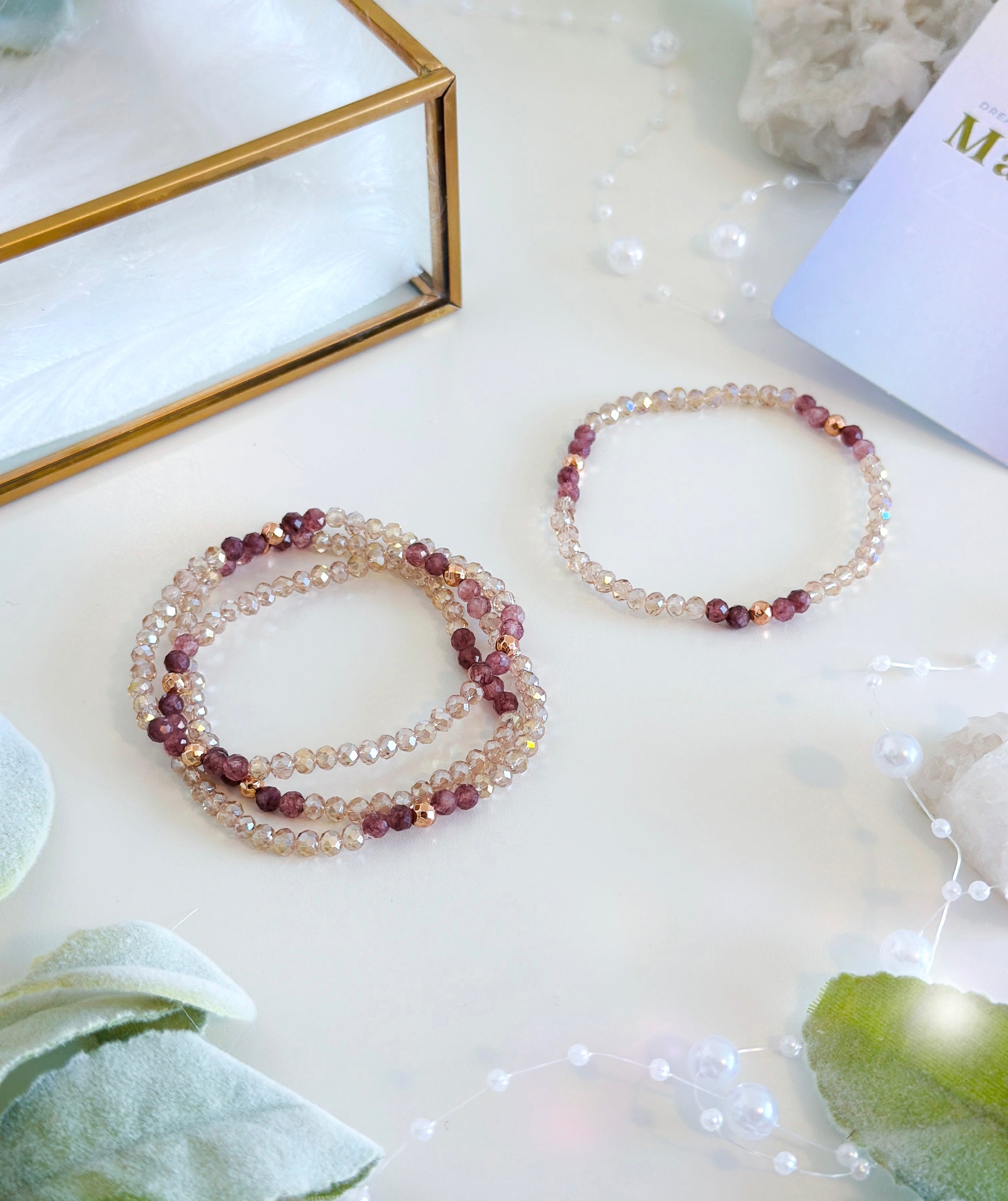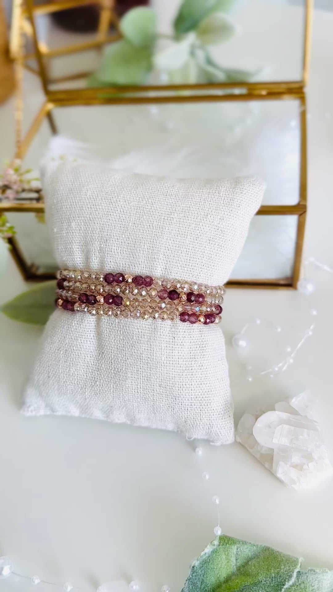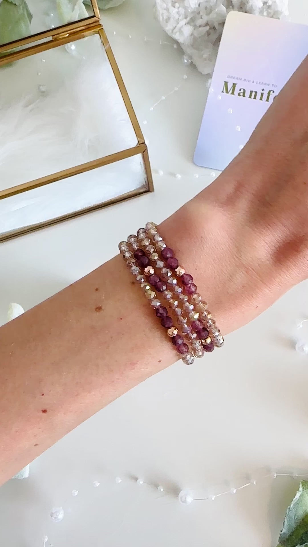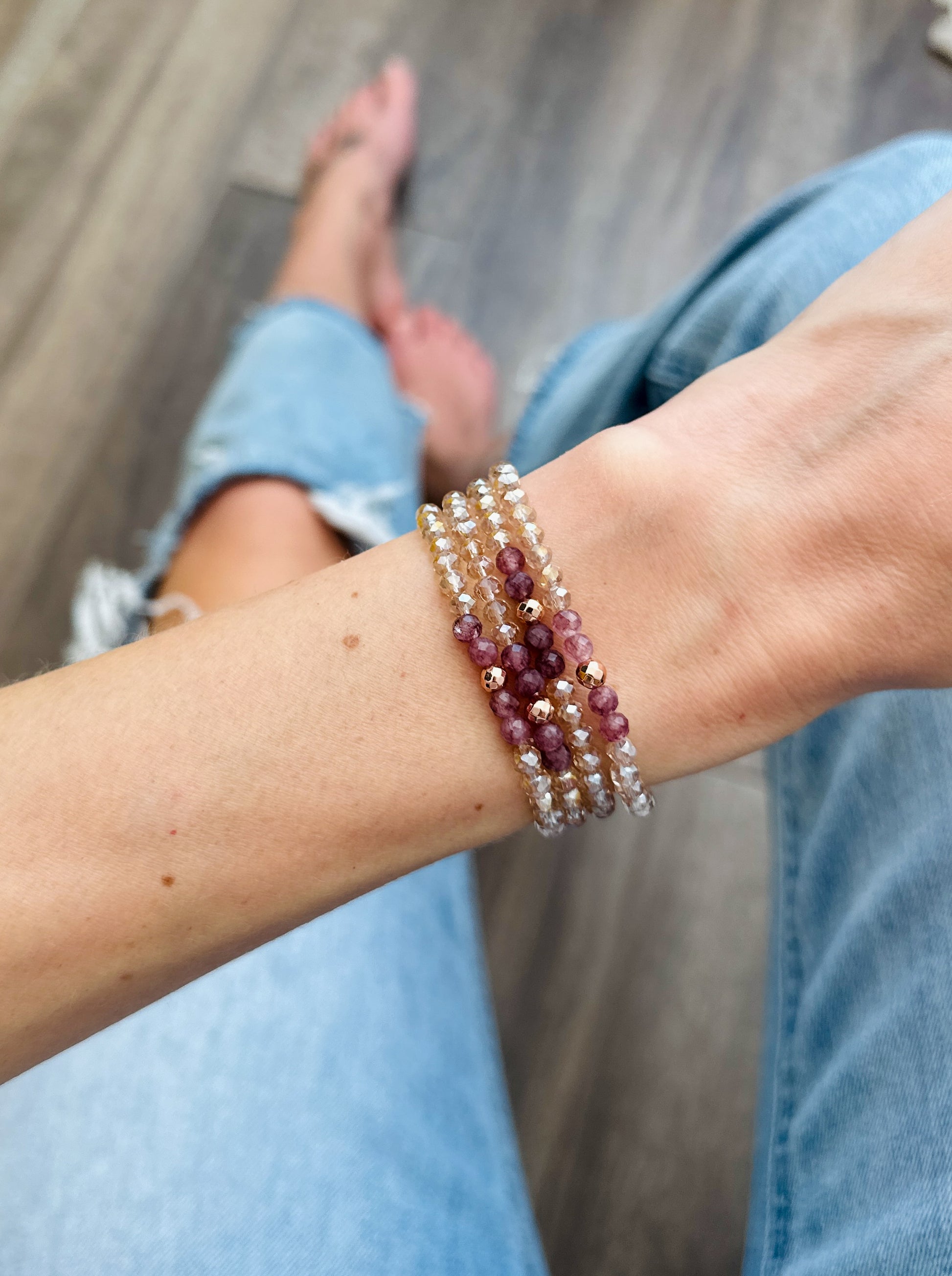4mm faceted gemstones paired with faceted rose gold Hematite spacers