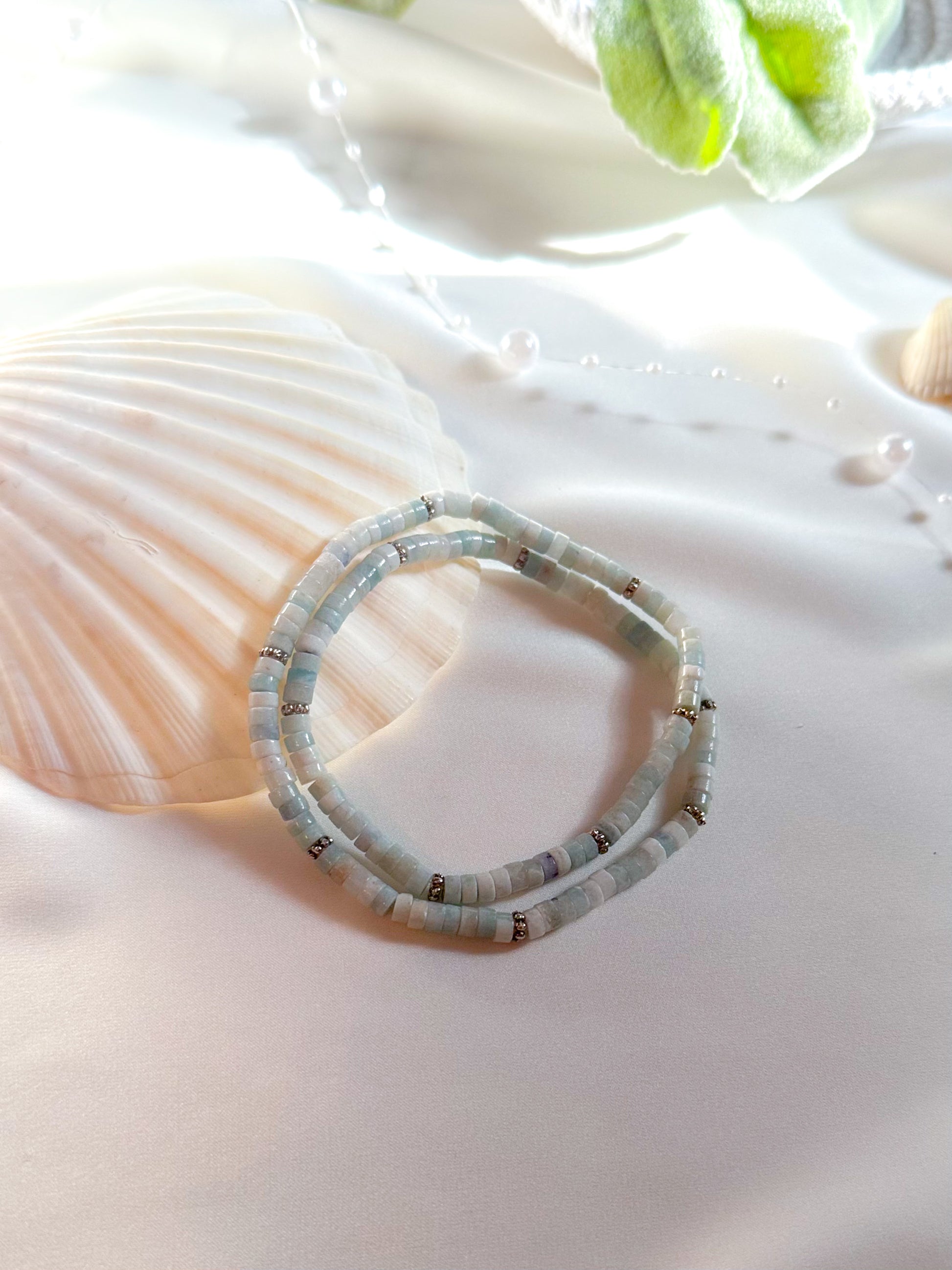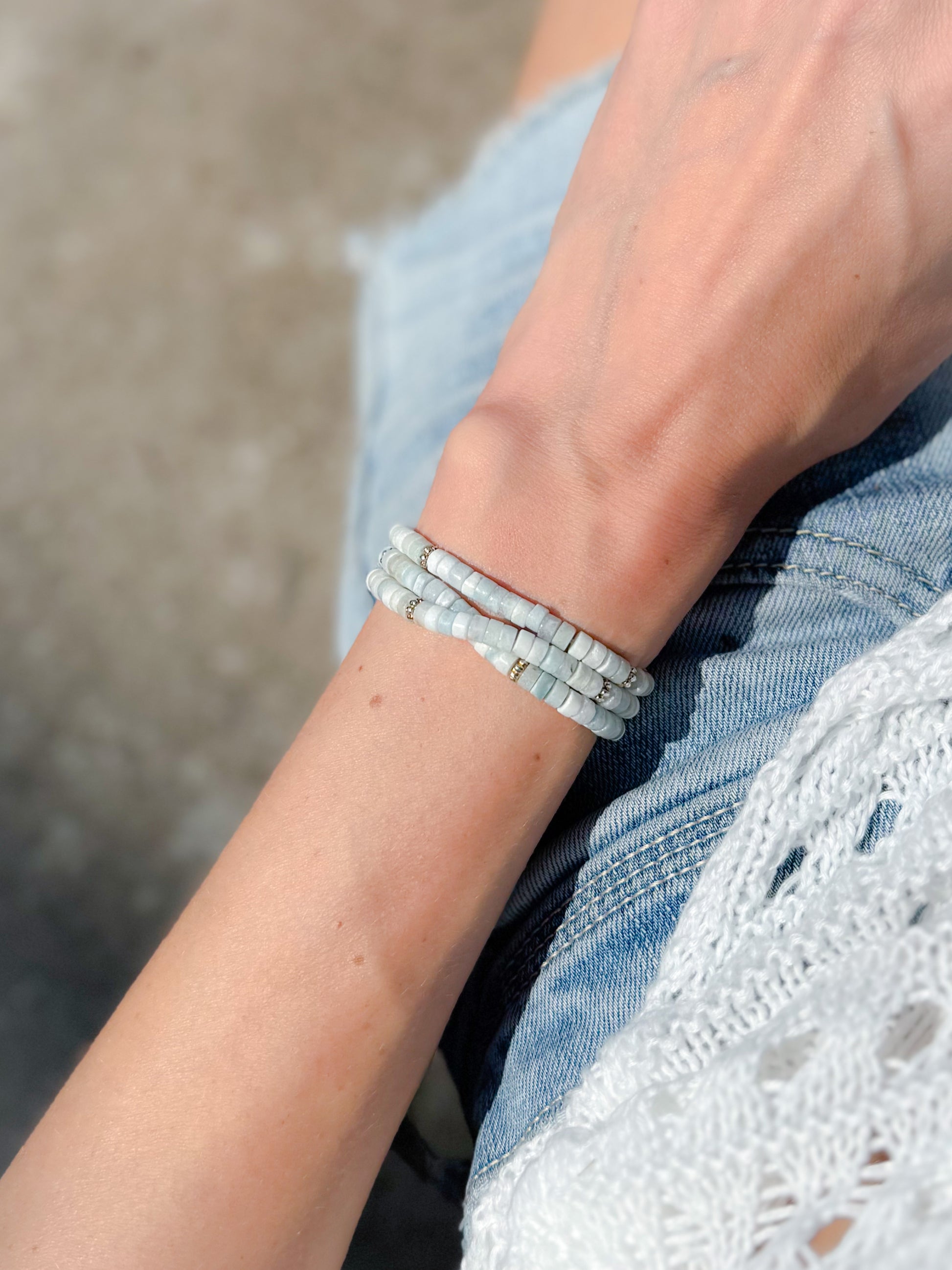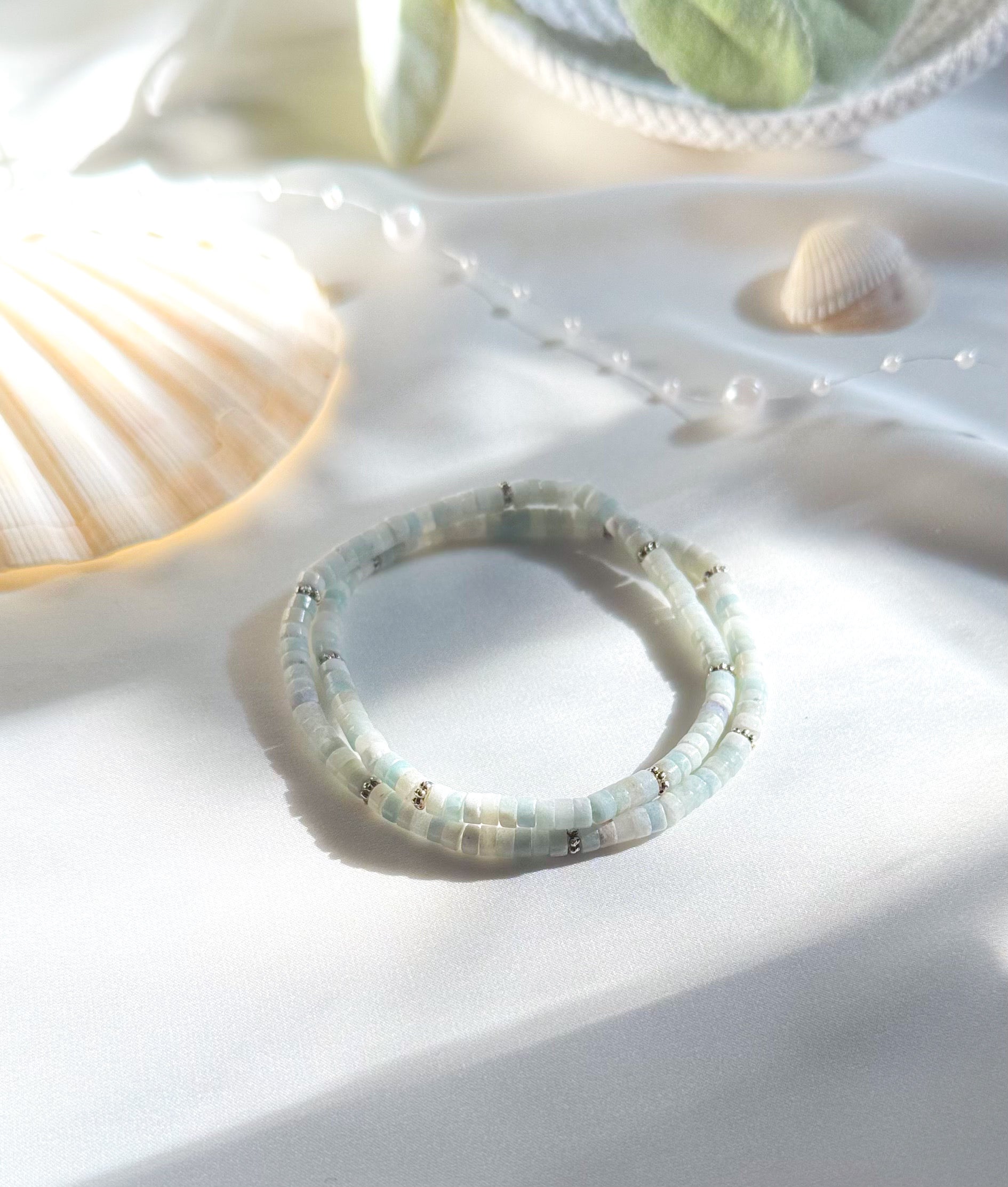 Experience the allure of our meticulously handcrafted gemstone wrap bracelet, featuring exquisite Aquamarine rondelle beads. Beyond its captivating design, this bracelet is enriched with healing properties that nurture your mind, body, and soul.
