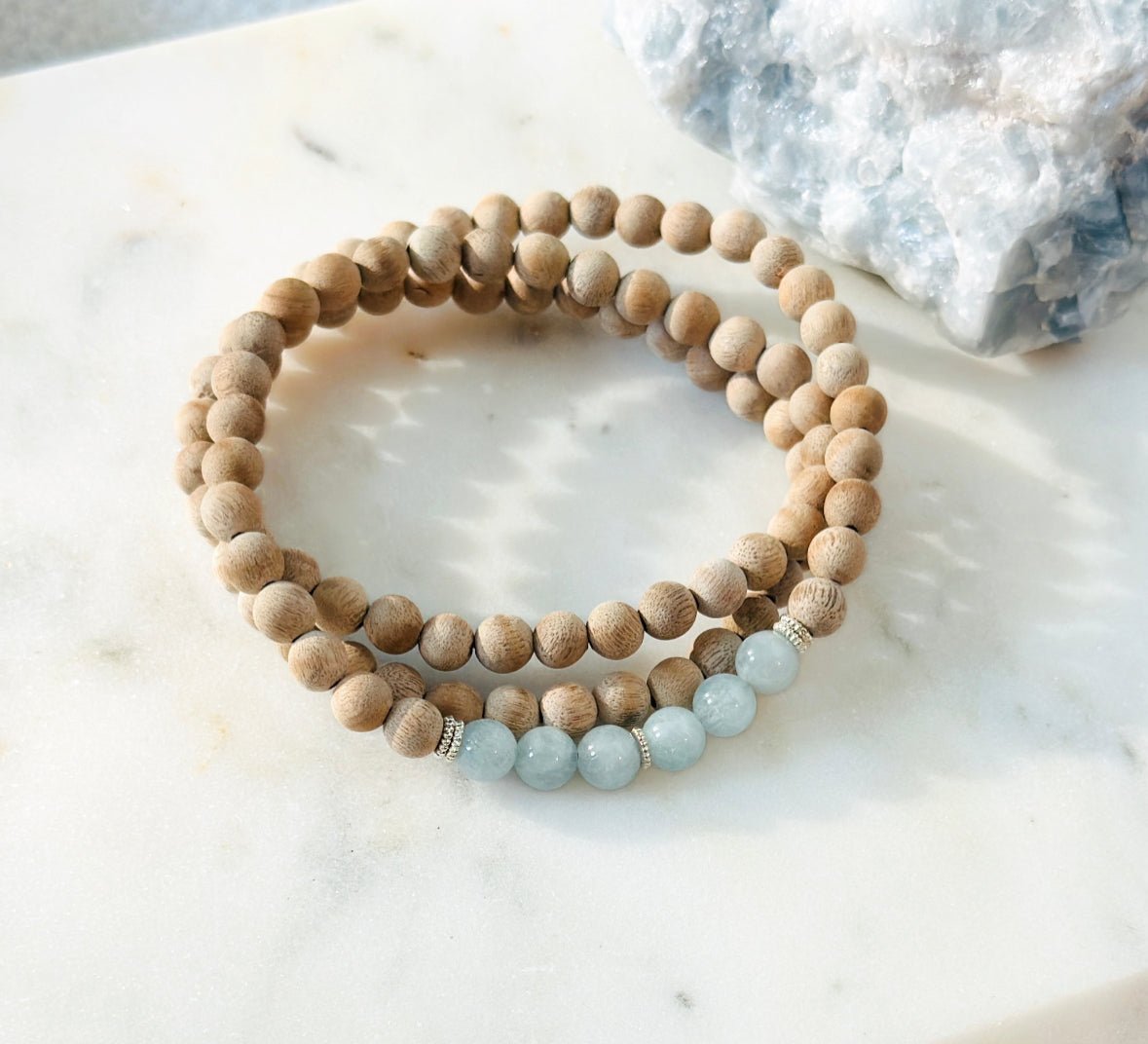 Whether you're seeking inner peace or adding a touch of sophistication to your outfit, this gemstone wrap bracelet with Matte Beechwood and Aquamarine healing properties is the ideal choice.