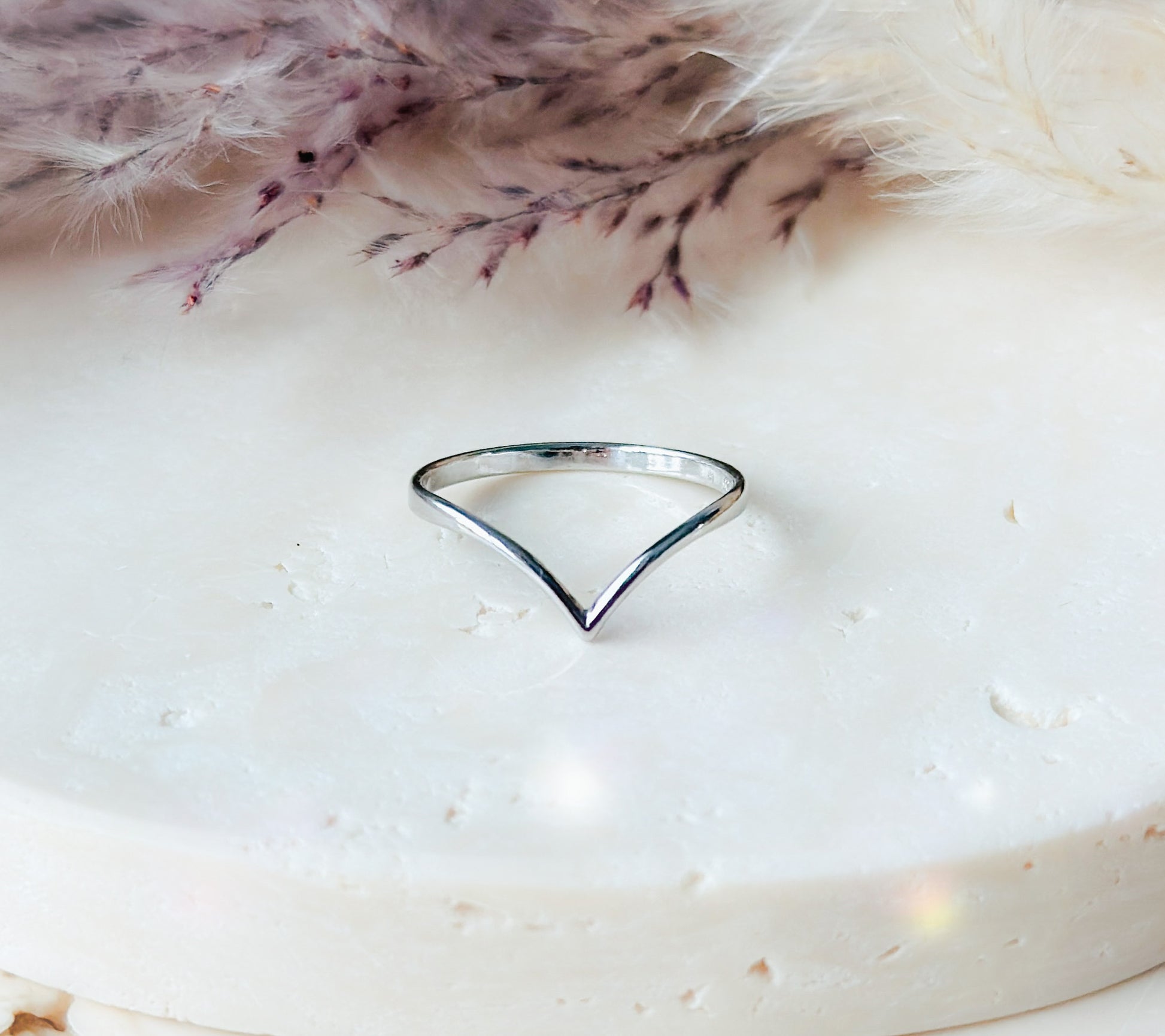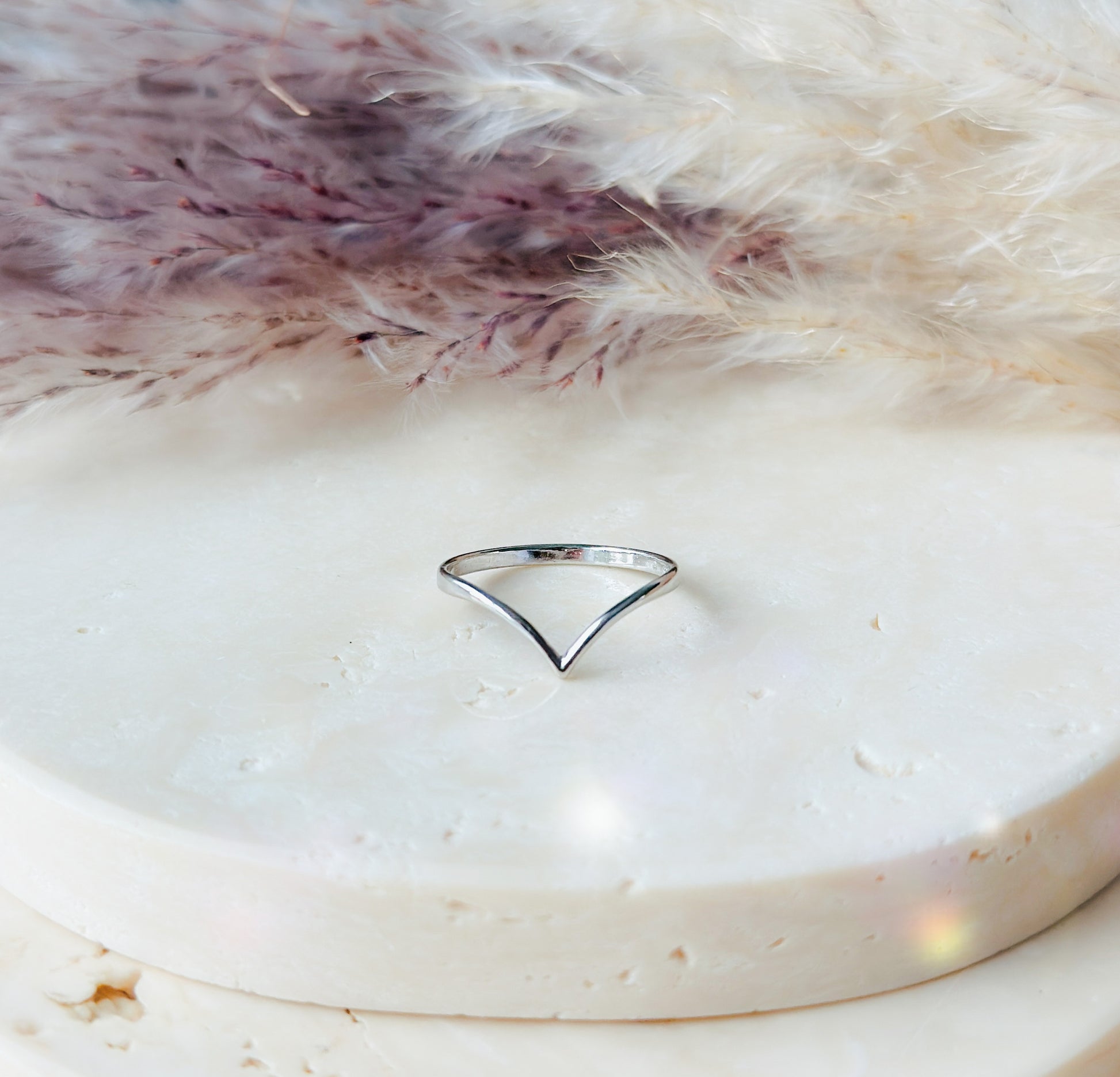 This sterling silver Chevron ring can be worn alone or stacked with other rings for a more dramatic effect. Its clean and modern lines make it a great choice for those who prefer a minimalist style, while its bold design adds a touch of edge to any outfit.