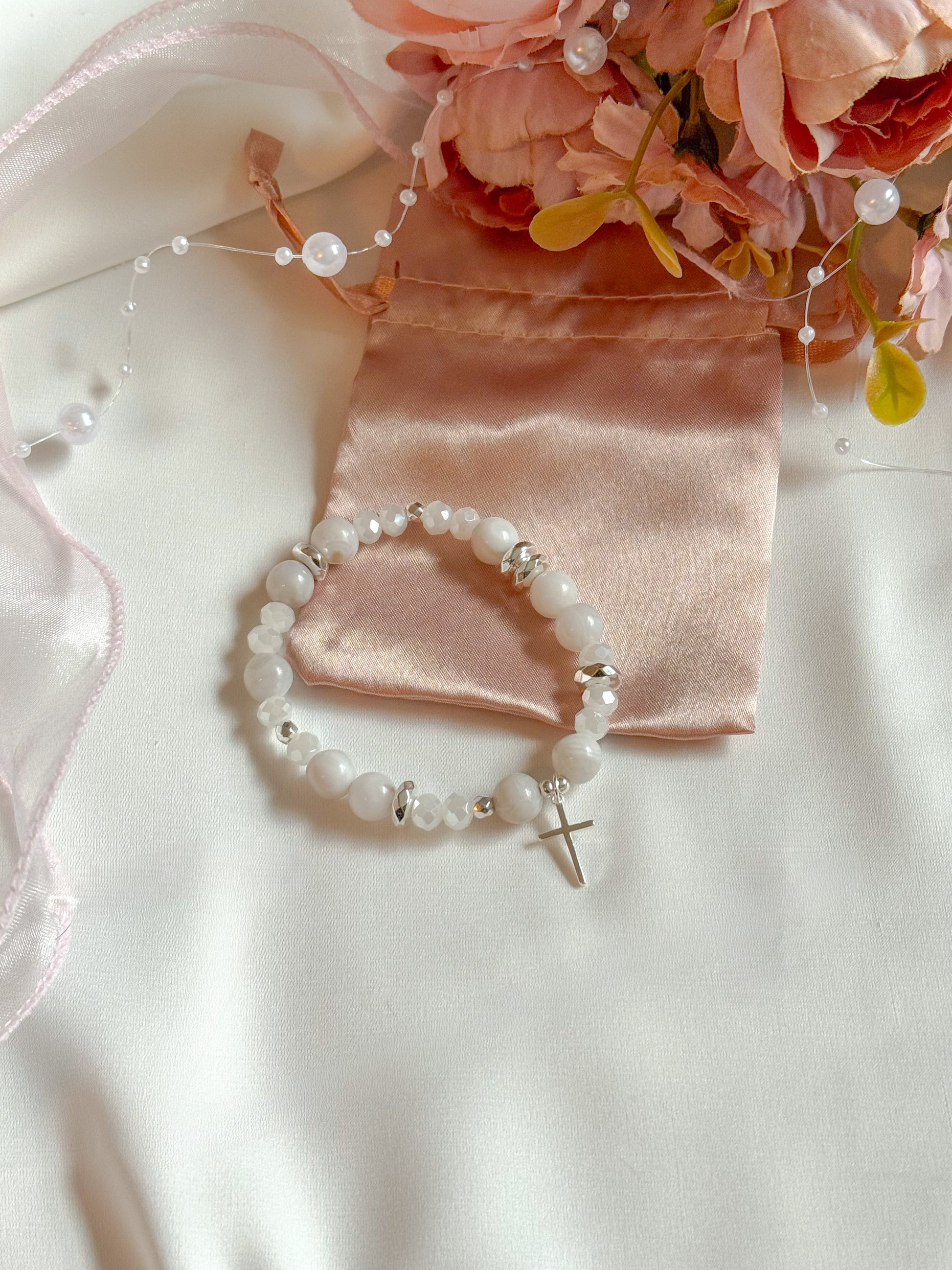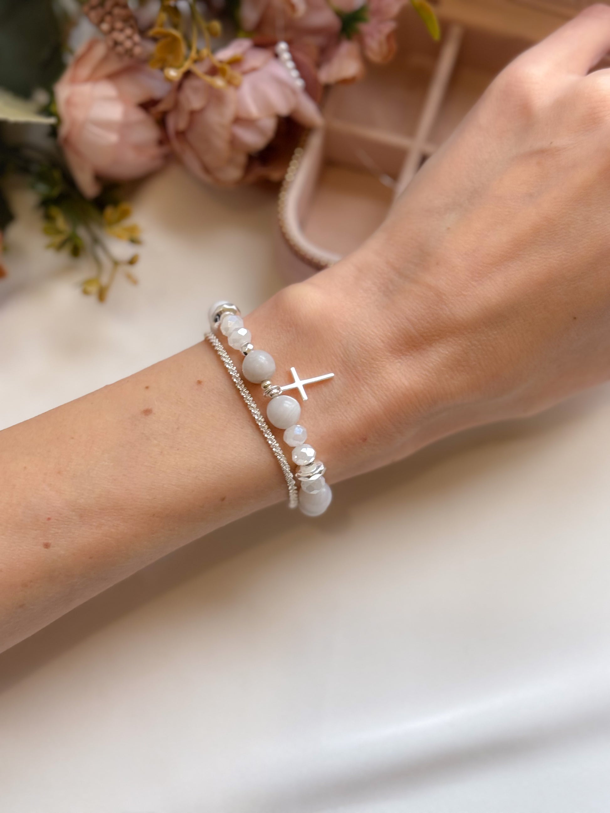 Finished with a sterling silver cross charm, The Faith Bracelet combines spiritual symbolism with modern elegance — a perfect accessory for everyday wear or a thoughtful gift for someone you love.