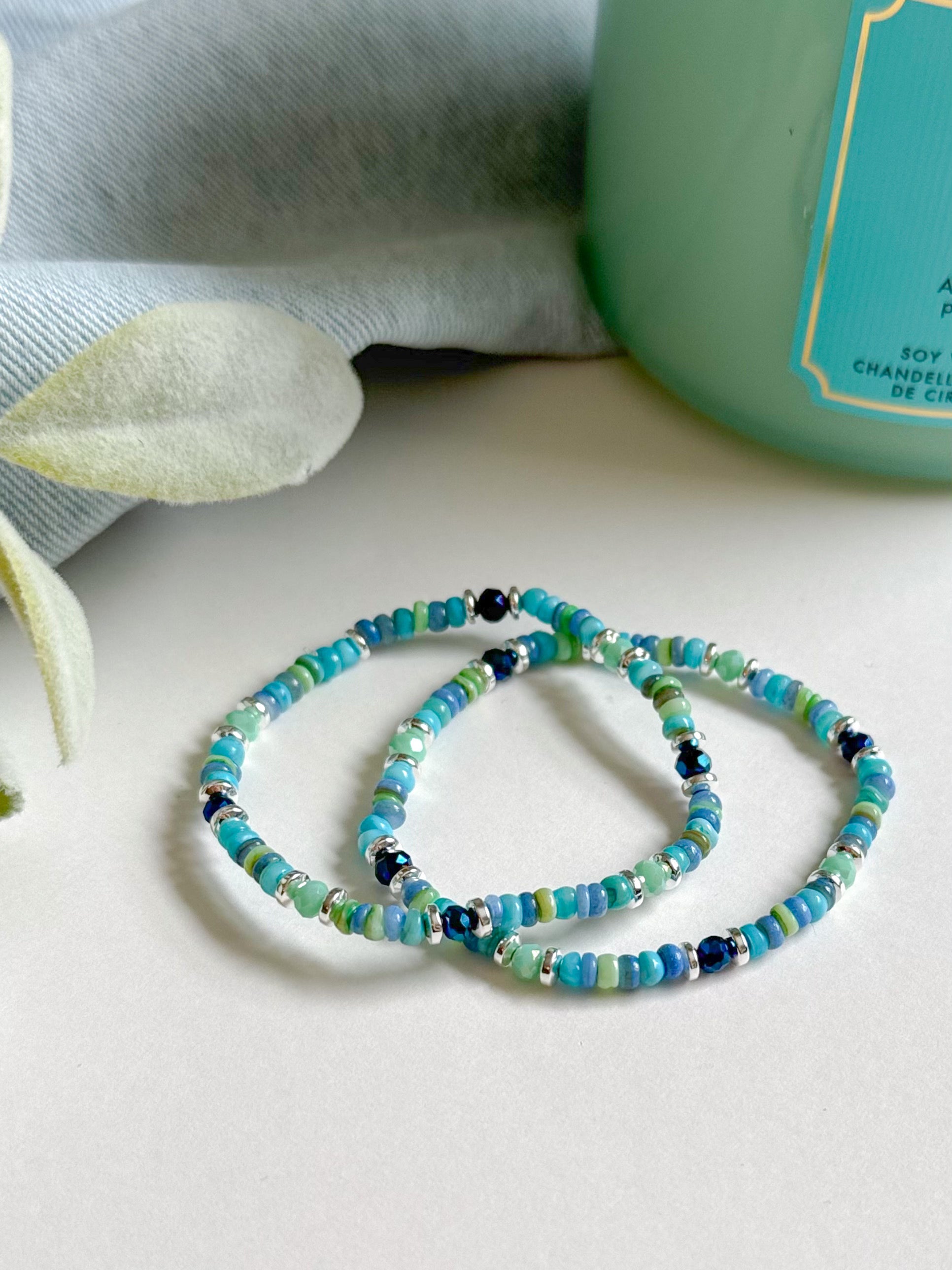The Garden Lake Paradise Bracelet is a serene, easygoing piece made with smooth 6mm Blue Jade rondelle beads—cool, calming, and effortlessly wearable.