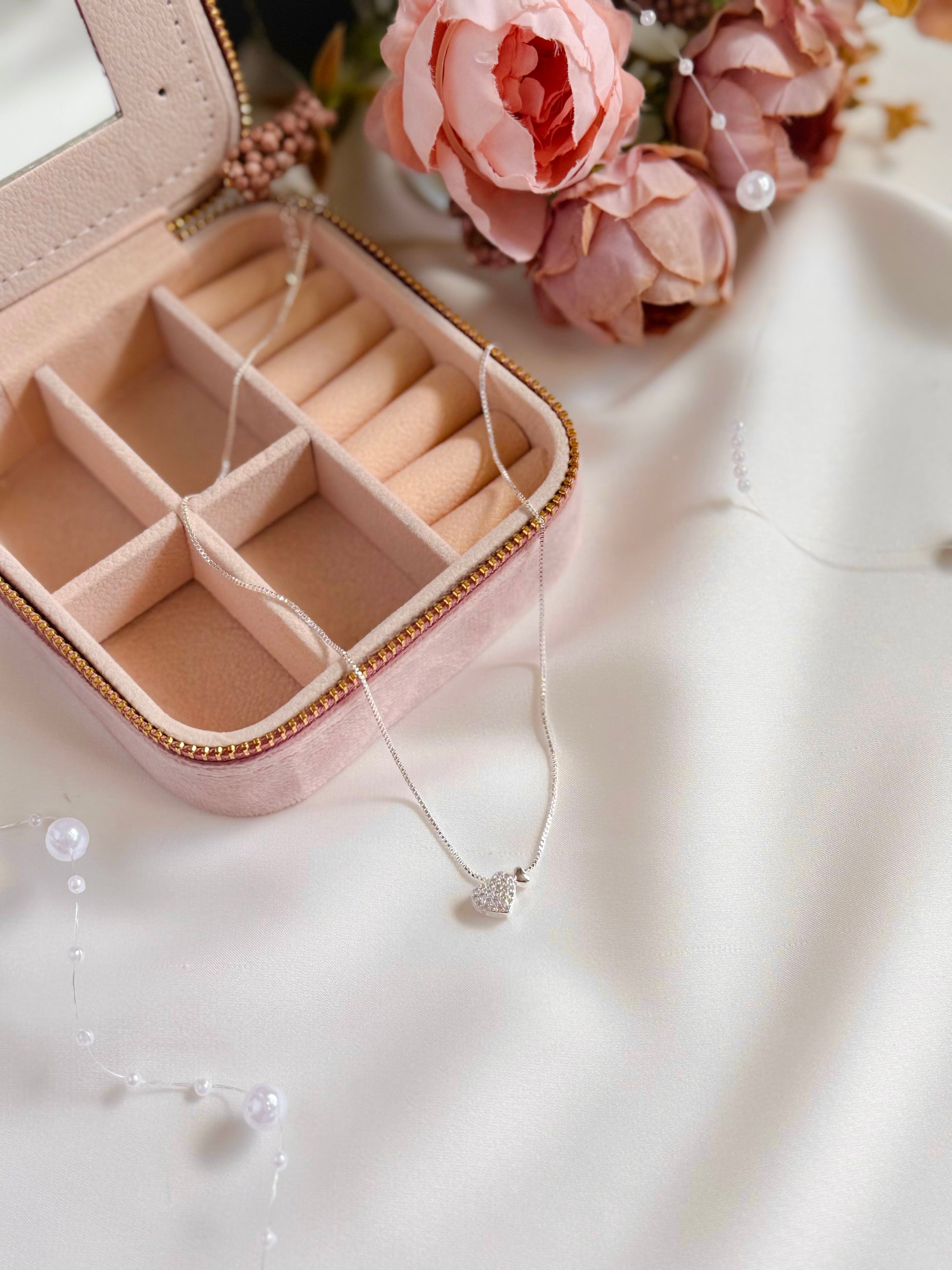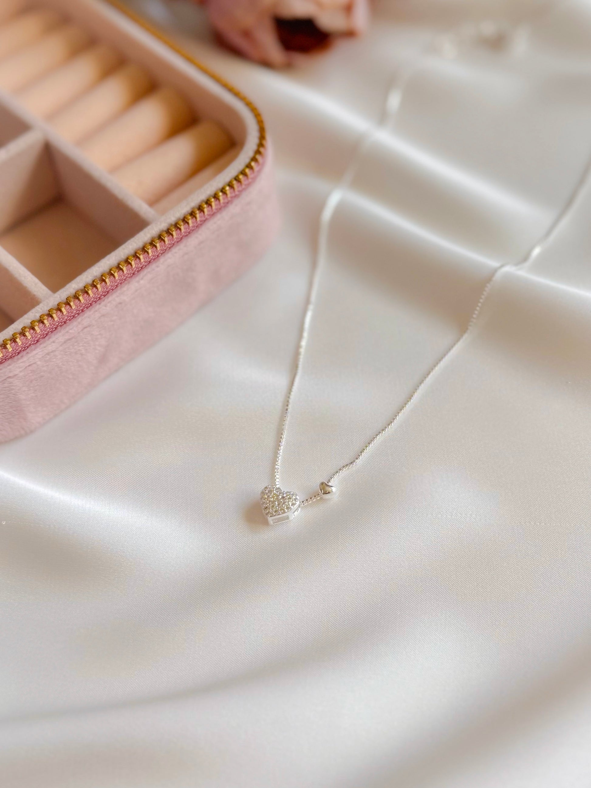 Crafted in 925 Sterling Silver, the design pairs a smooth polished heart with a pavé-set heart adorned with AAA-grade Cubic Zirconia, catching the light with a soft, diamond-like glow.
