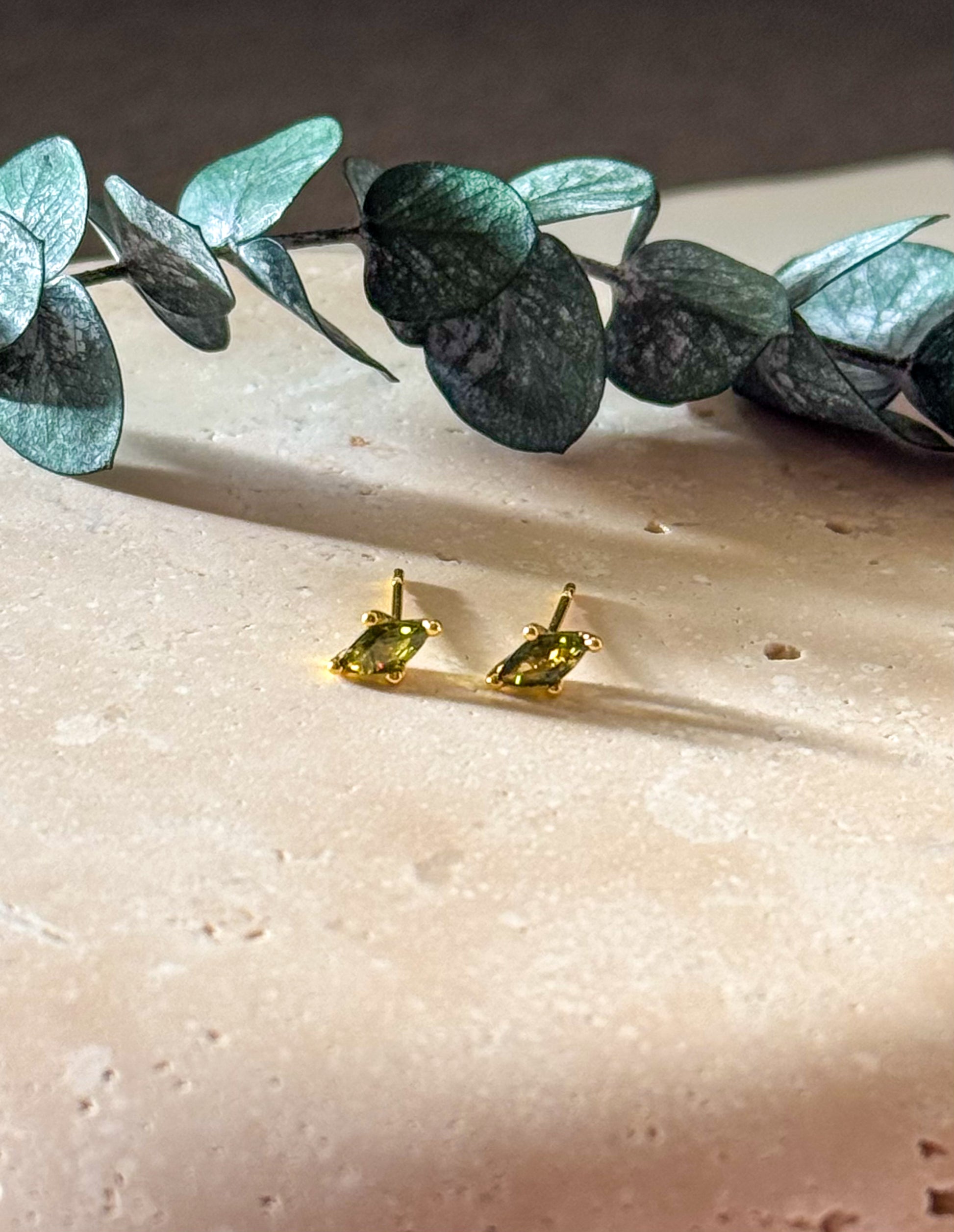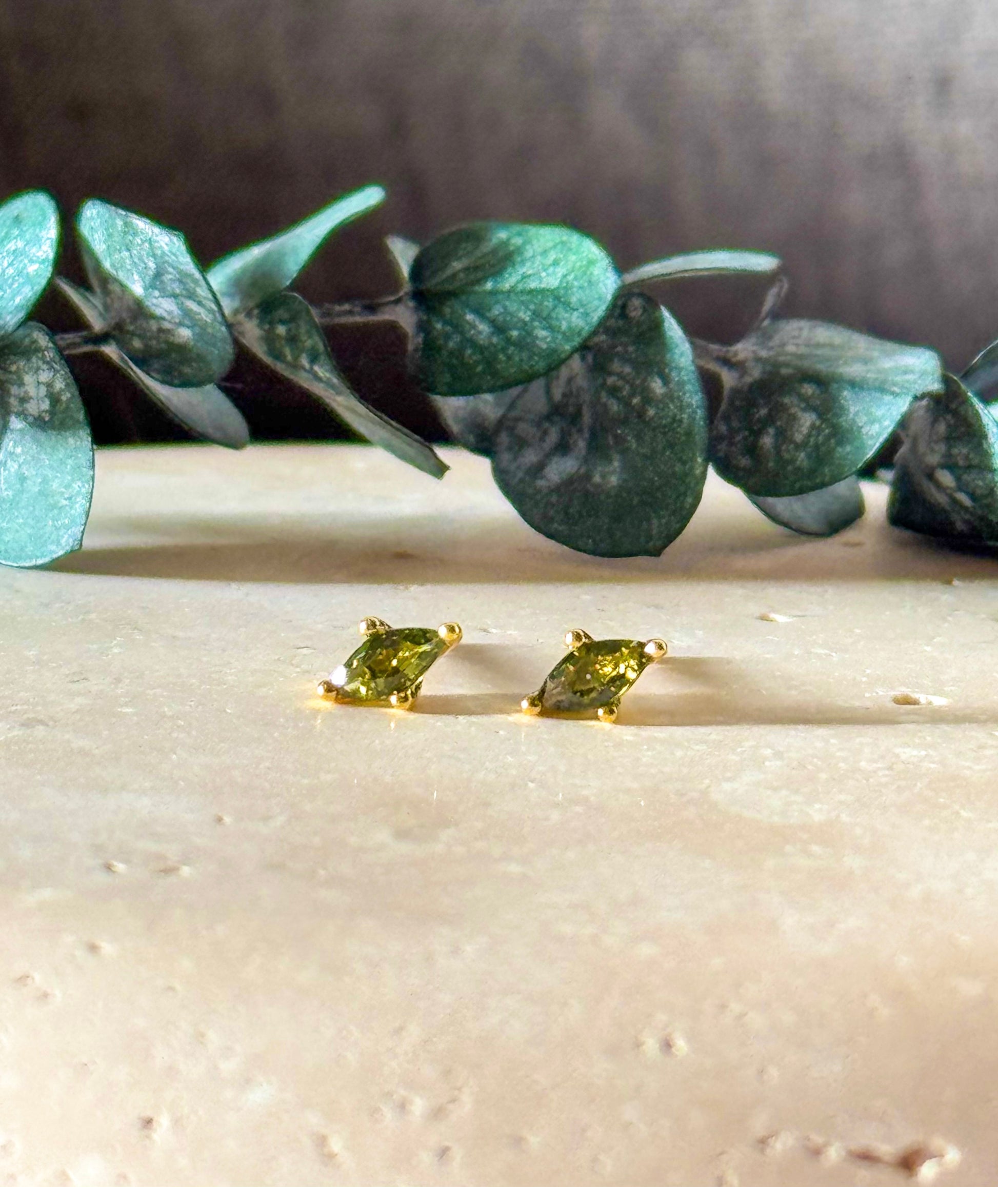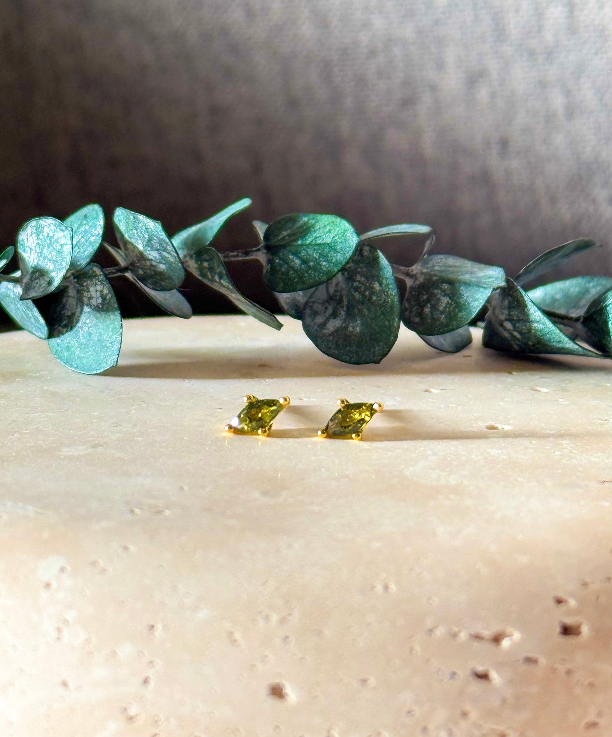 Nestled in luminous PVD gold-plated settings, these kite-cut green sapphires reveal a deep, mossy glow that changes with every angle—reflecting both elegance and the journey of personal growth.