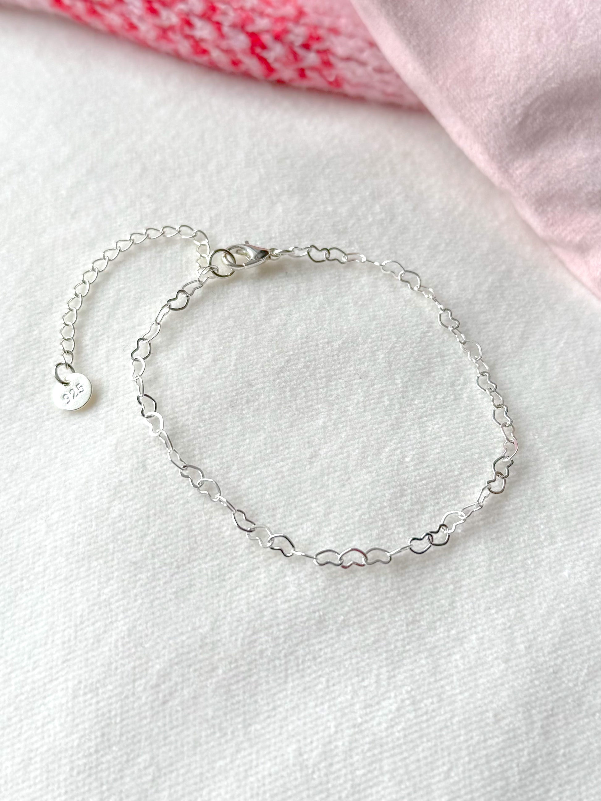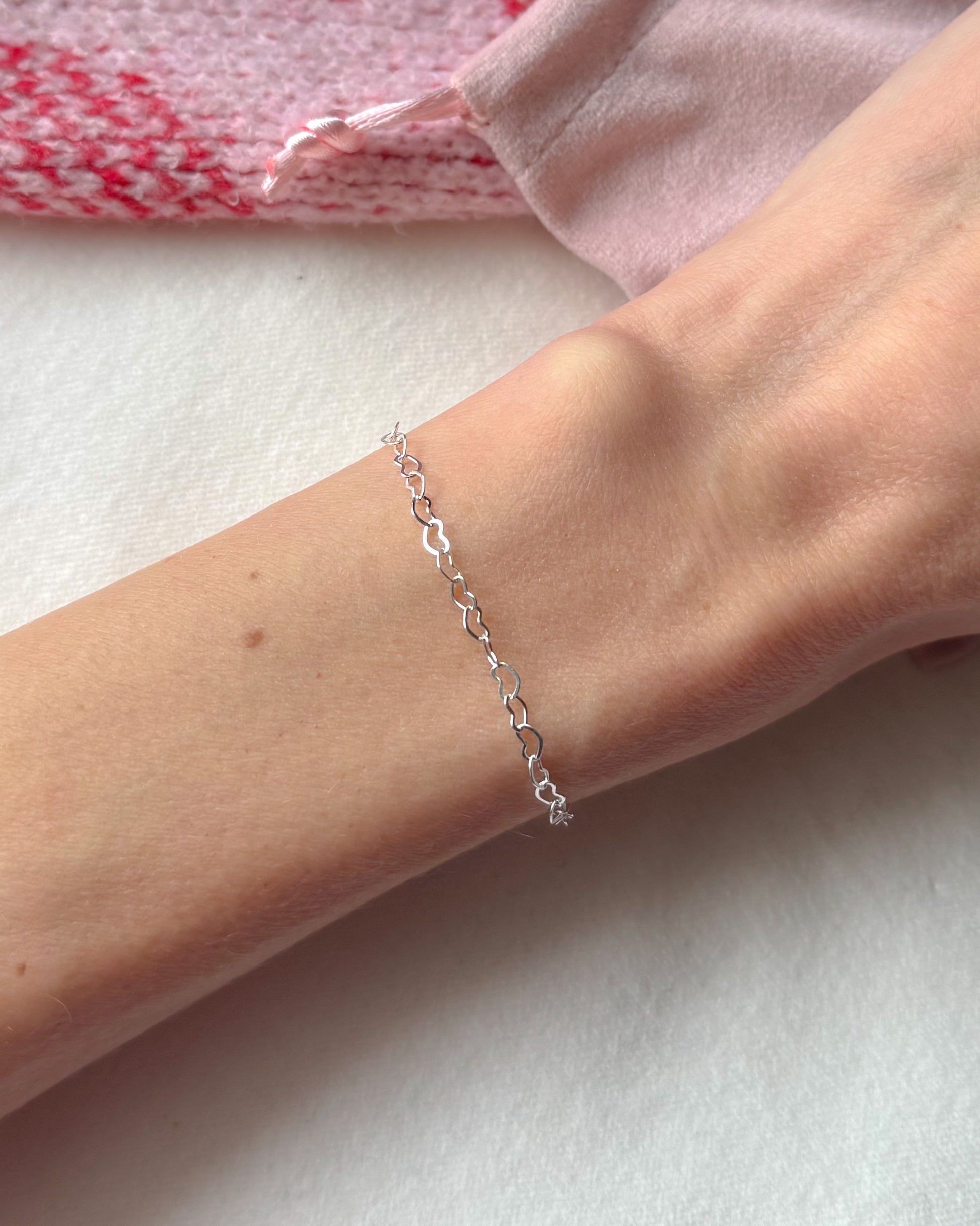 Crafted in sterling silver, this dainty heart-link bracelet is a timeless symbol of love, connection, and gentle strength. Designed for everyday elegance, it’s a piece you’ll reach for again and again—perfect worn solo or layered with your favourites.