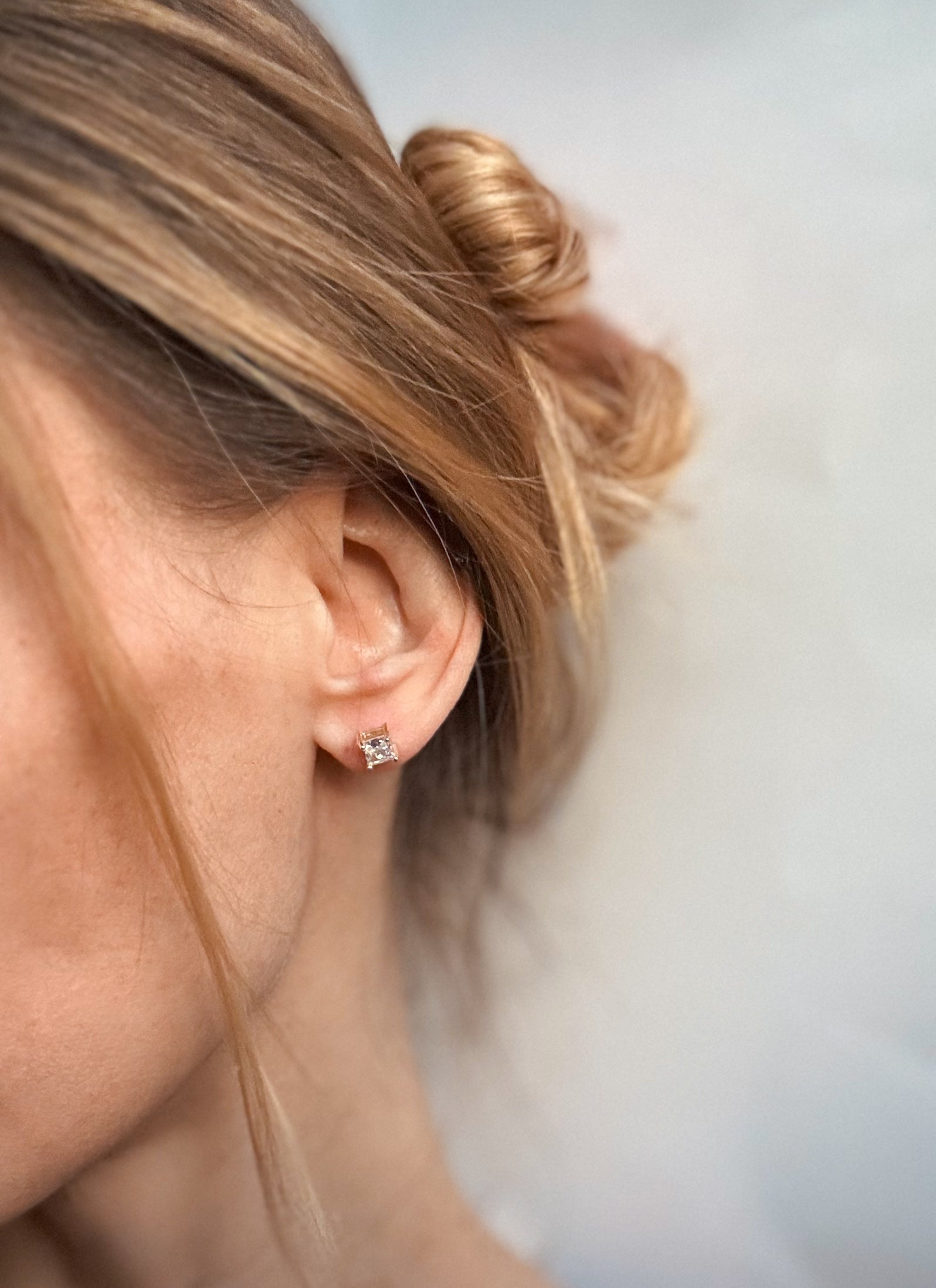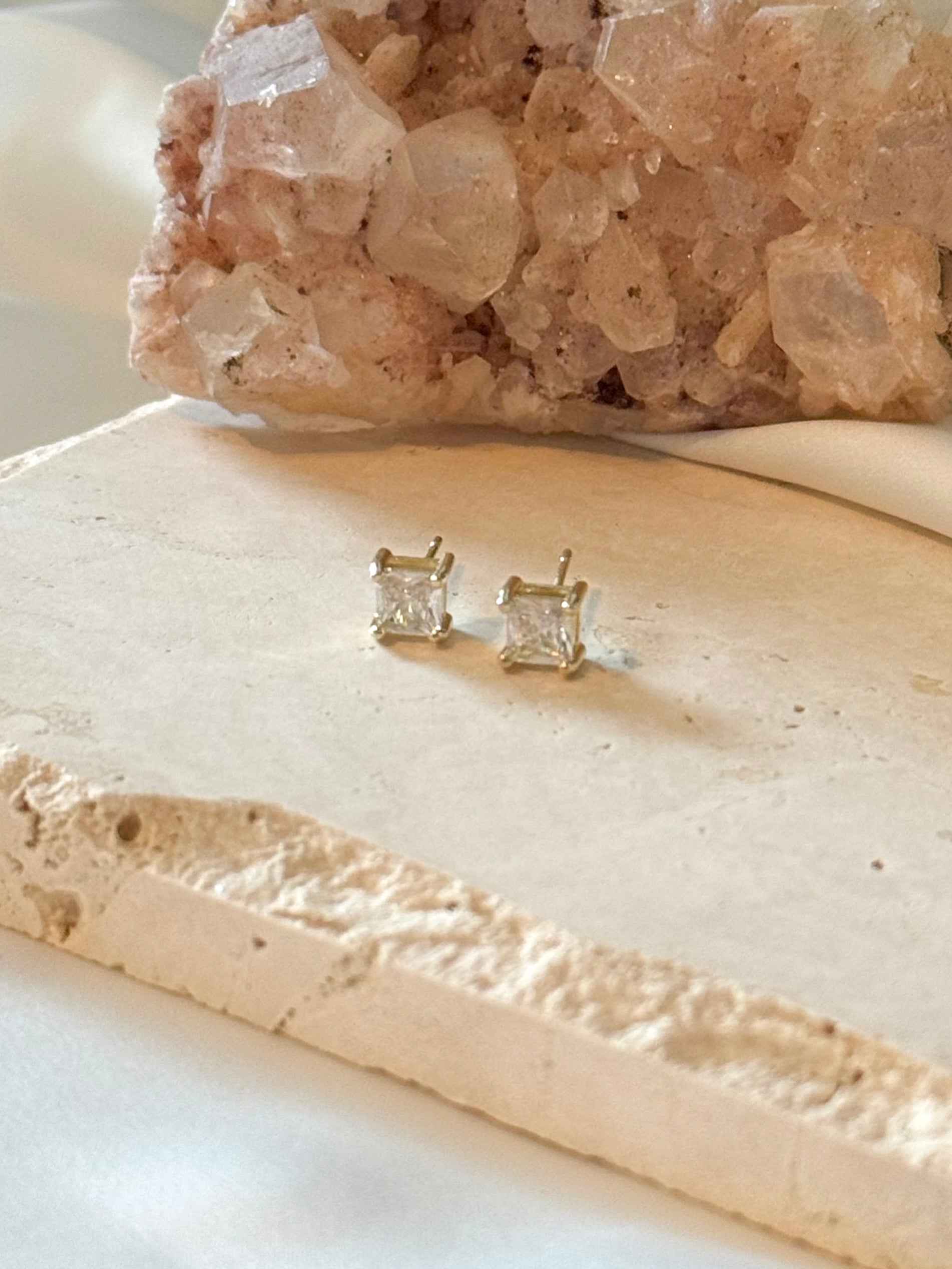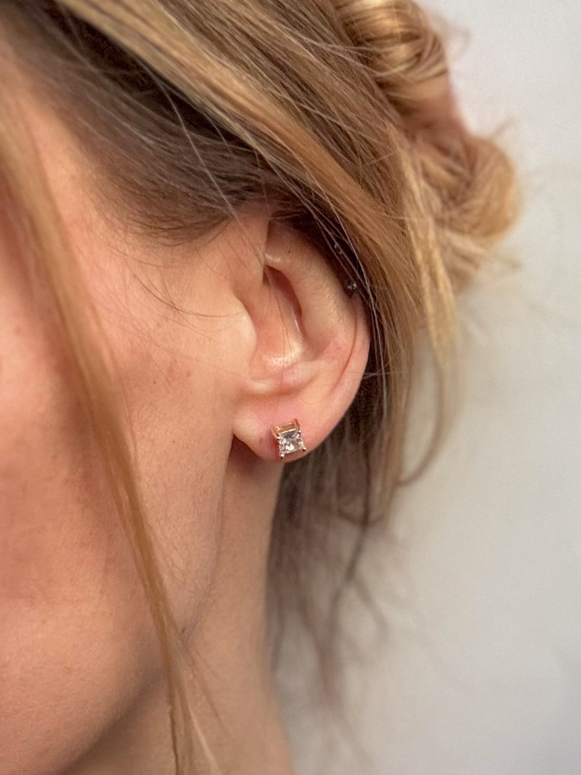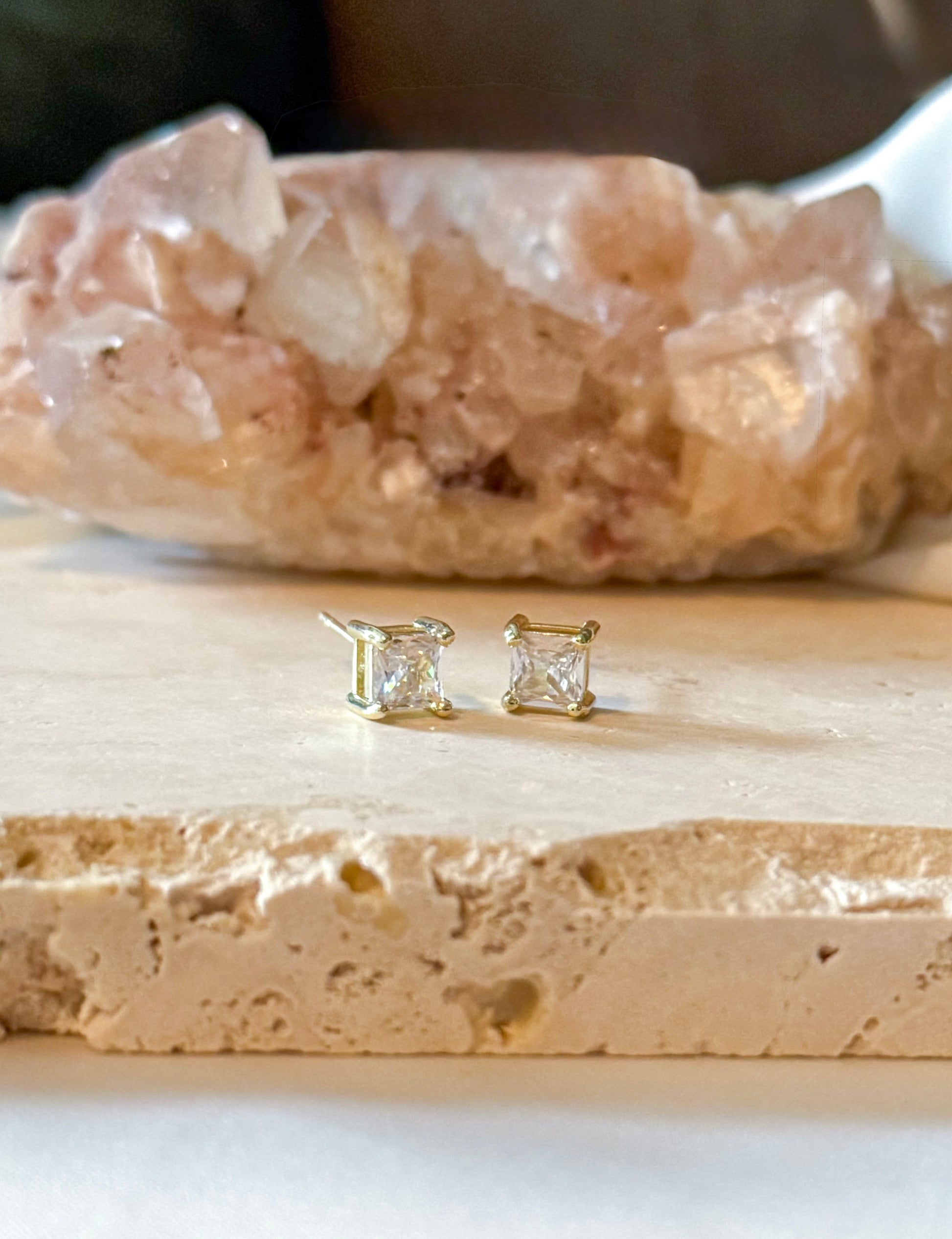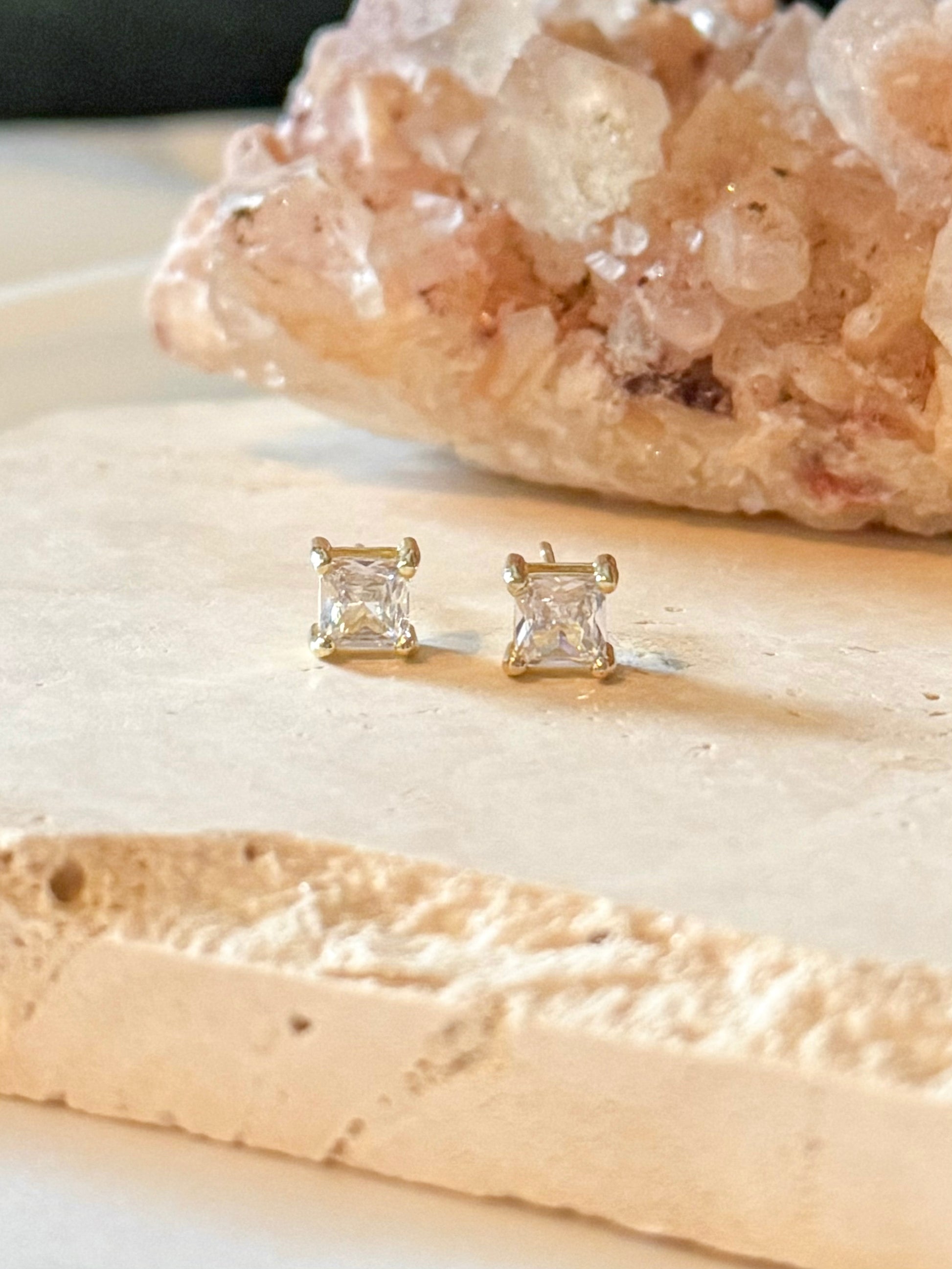 Sleek and effortlessly elegant, The Lucia Studs feature a 5mm princess-cut Cubic Zirconia that catches the light from every angle. A modern square silhouette makes them timeless, polished, and easy for everyday wear.