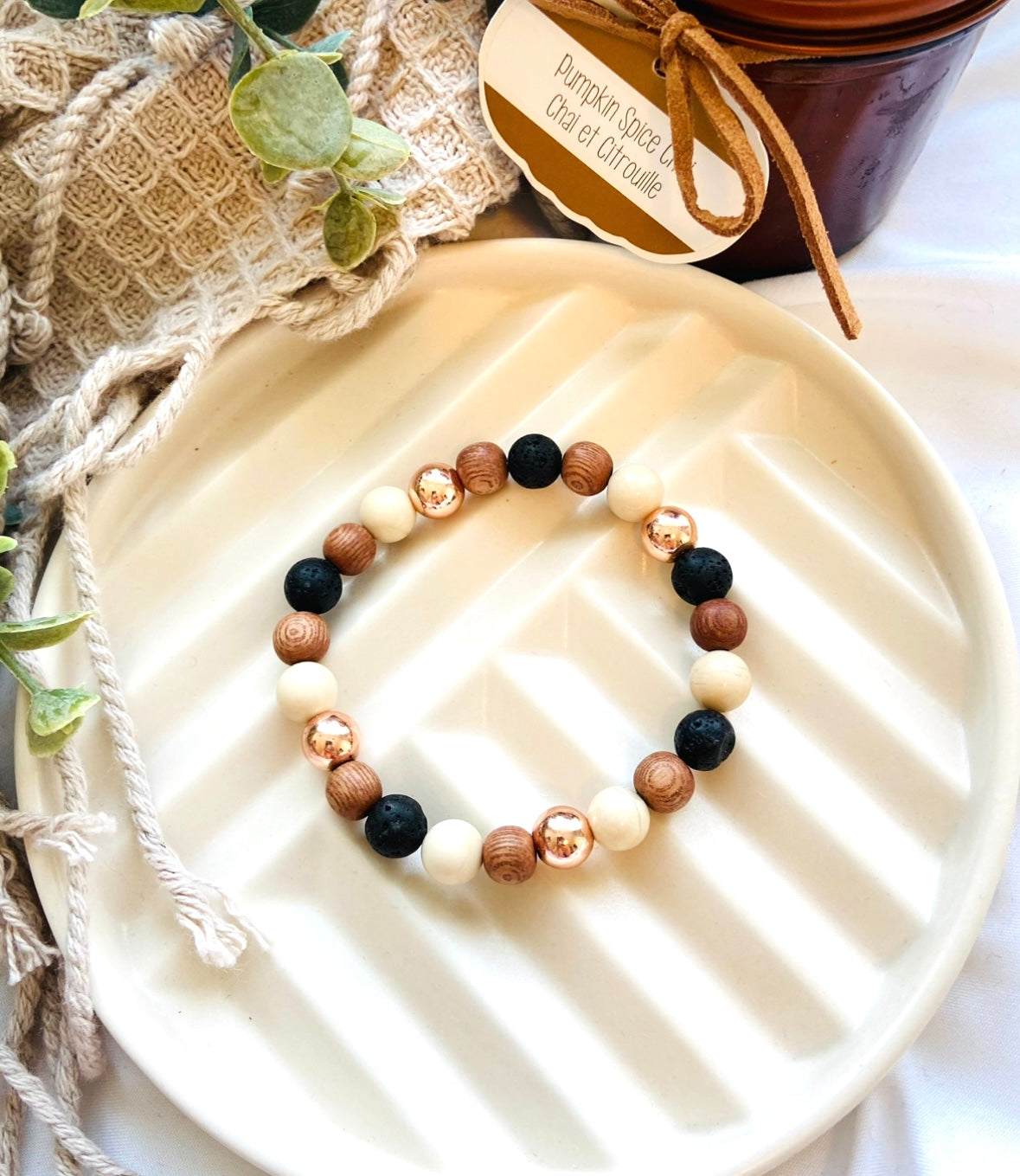 Introducing the "Pumpkin Spice" Gemstone Bracelet Stacking Set, a warm and invigorating combination of Riverstone Jasper, Lava Rock, Rosewood, and Rose Gold Hematite. This set is more than just a stylish ensemble; it's a celebration of grounded energy, earthy warmth, and understated elegance. Perfect for fall.