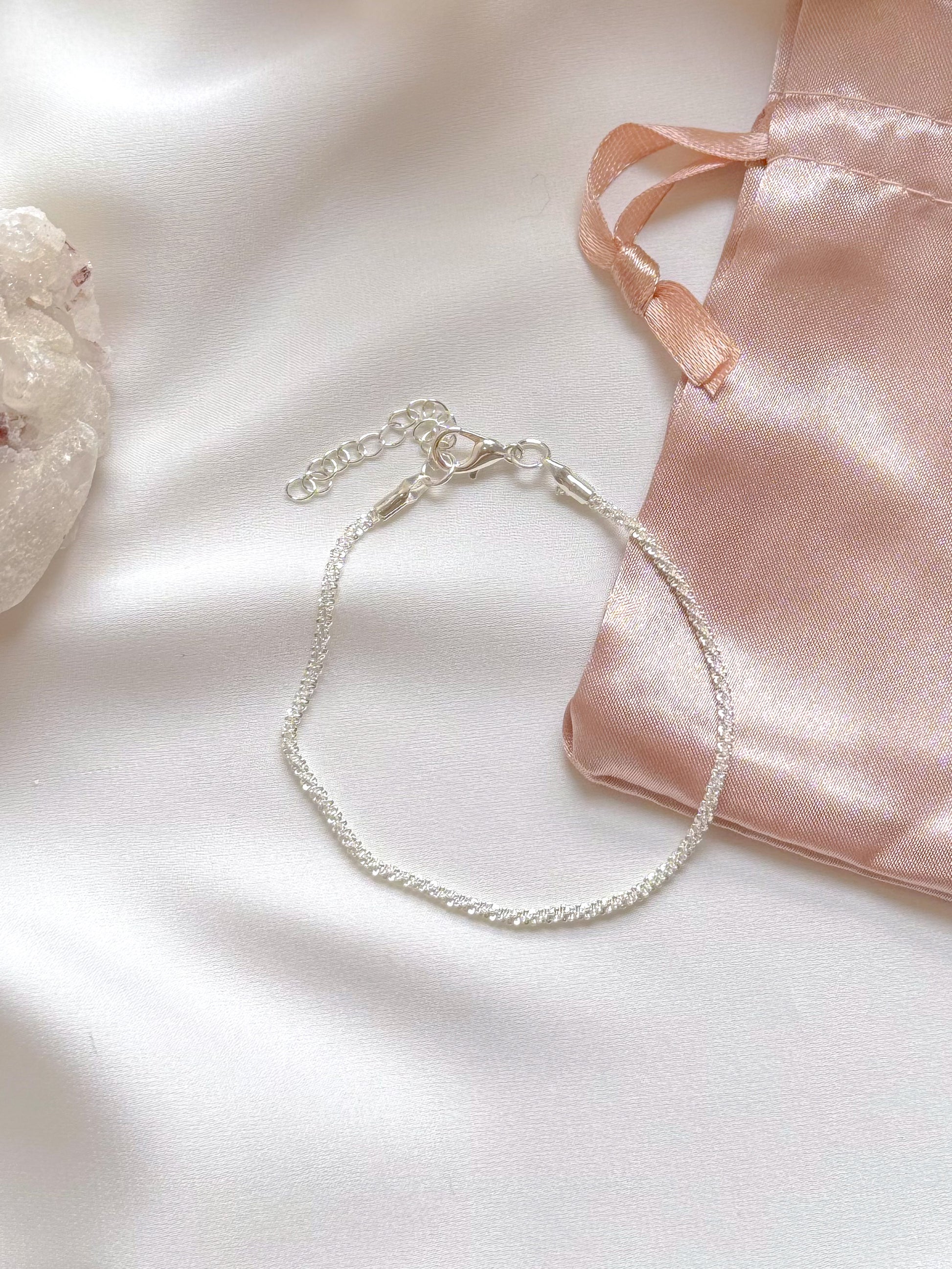 Elegant, minimal, and endlessly versatile — The Sparkling Serenity Bracelet is crafted from a fine 2mm sterling silver chain that glimmers beautifully with every flicker of light.