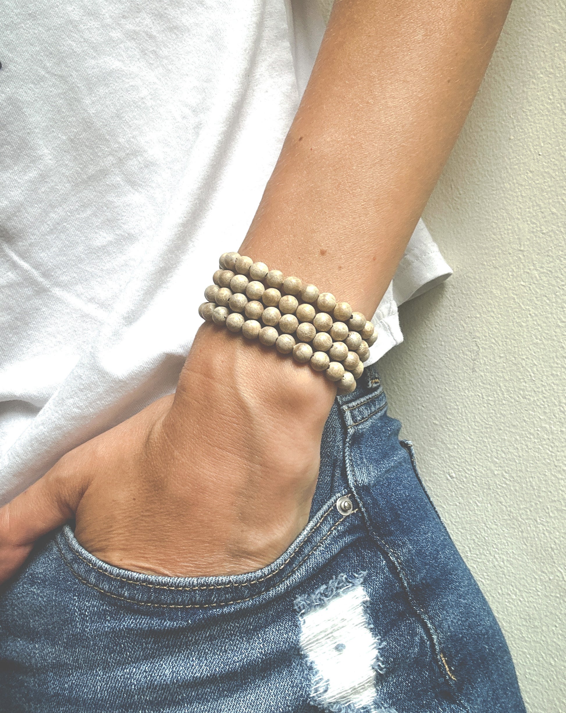 Introducing our enchanting Wood Bead Bracelets, carefully handcrafted to embody the essence of healing and spirituality. With 108 6mm beads, these bracelets hold deep symbolic significance and can be effortlessly worn as a wrap bracelet or transformed into a serene necklace. Embrace the natural beauty of wood while enjoying the healing properties that promote a sense of balance, grounding, and well-being, making these versatile bracelets a perfect fusion of style and holistic connection.